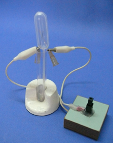 Elektroliza vode provodi se u plastičnoj pipeti. Eksplozija plinske smjese aktivira se s iskrom.